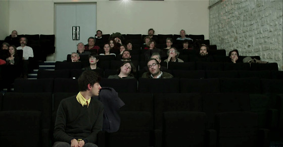 83mnFred Périé & Franck Gourdien ![]() L'autre de l'autre repose sur l'illusion que celui qui parle à l'écran est dans la salle où le film est projeté. Se pose ainsi la question de la présence du public comme justification de la réalité. En même temps l'autre nous parle d'un autre autre qui, lui, n'est pas là. Les spectateurs sont en effet filmés et se voient aux côtés de témoins qui nous parlent de leurs rapports à l'autre au travers d'histoires personnelles. C'est comme si ces témoins, treize en tout, l'un après l'autre, étaient ici et c’est avec ce "comme si" qu’est indirectement évoqué le thème de l'empathie. C'est un film, parce qu'il a un début et une fin, une durée donnée, parce qu'il suit un montage précis, mais c'est aussi un dispositif numérique qui exploite la nature même du lieu de la salle de cinéma. L'incrustation dans l'image captée de la salle est le seul effet qui affecte les récits filmés. À l'inverse, les spectateurs présents sont soumis en direct à des traitements numériques : zoom sur des personnes présentes, salle vide, un seul spectateur présent... ![]() ![]() Il n'y a cependant aucune action en jeu de la part du public, l'image n'est pas interactive au sens informatique du terme, mais elle s'écarte de l'objet-film pour devenir une surface sensible à la réalité du présent. Elle tente ainsi d'interroger le lien subjectif entre le personnage filmé et le spectateur/participant. Les récits sont entrelacés de plans situant le témoin hors du contexte du témoignage et choisis afin d'apporter à ce dernier un éclairage singulier. ![]() |