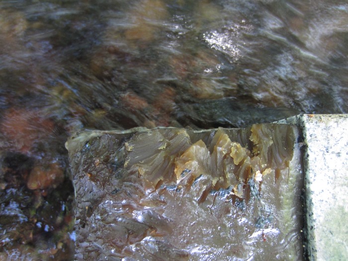 Installation éphémère dans un parc, Mai Juin 2012Granit, colle d'os, saindoux Festival Land Art, Riorges (Loire) Cette installation est dérivée de "La chose", une expérience commencée en 2011 et toujours en évolution. A Riorges, le projet comporte environ 20 éléments constitués de cubes de pierre, sur lesquels sont moulés des cubes biologiques au même format que la pierre (20x20x20cm). Le matériau biologique utilisé est composé d'un mélange de colle d'os (protéines), de bouillon (eau, graisse et sucres) et éventuellement de terre. Avec le temps la colle d'os sèche, si bien que le cube de déforme progressivement jusqu'à devenir une sphère. Mais il existe en parallèle de possibles interactions avec les intempéries et avec le biotope (insectes, bactéries, moisissures...) qui dépendent des emplacements choisis. Les éléments sont disposés à même le sol, et répartis sur un terrain assez vaste selon un plan d'ensemble qui ne suit pas un ordre géométrique, mais plutôt un rapport intuitif avec le paysage environnant. L'installation apparaît comme une population dispersée dans son habitat naturel, des sortes de témoins qui portent la trace de leur entour. Loin du spectaculaire, l'ensemble se veut discret, car ce qui est recherché ici, ce sont les processus de transformation et leurs variations selon l'espace et l'environnement. |